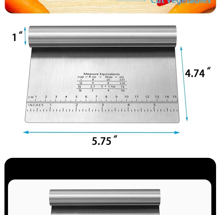 1pc Multipurpose Cake Bread Separator Scale Knife Stainless Steel Dough Pastry Scraper Pizza Cutter Chopper with Measuring Scale