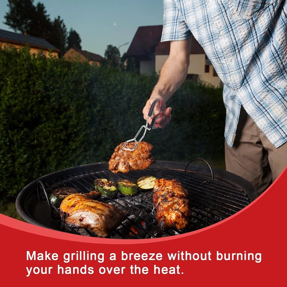 You can use the cooking scissors tongs to pick and turn over different sizes of food, or you can also pick up charcoal by this tongs, convenient to use, prevent food oil or dust from dirtying your hands