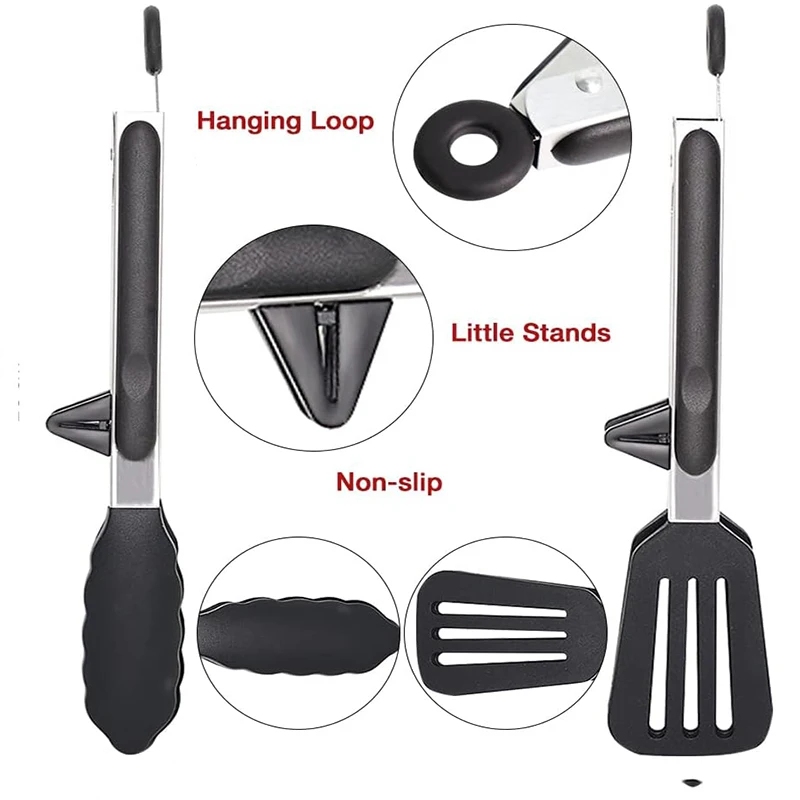2. The non-stick silicone tongs head is easy to clamp and easy to clean. With a bracket design to prevent the tongs head from touching the desktop.