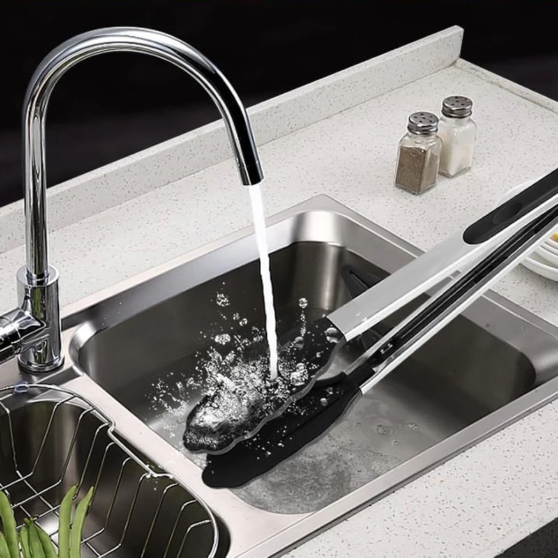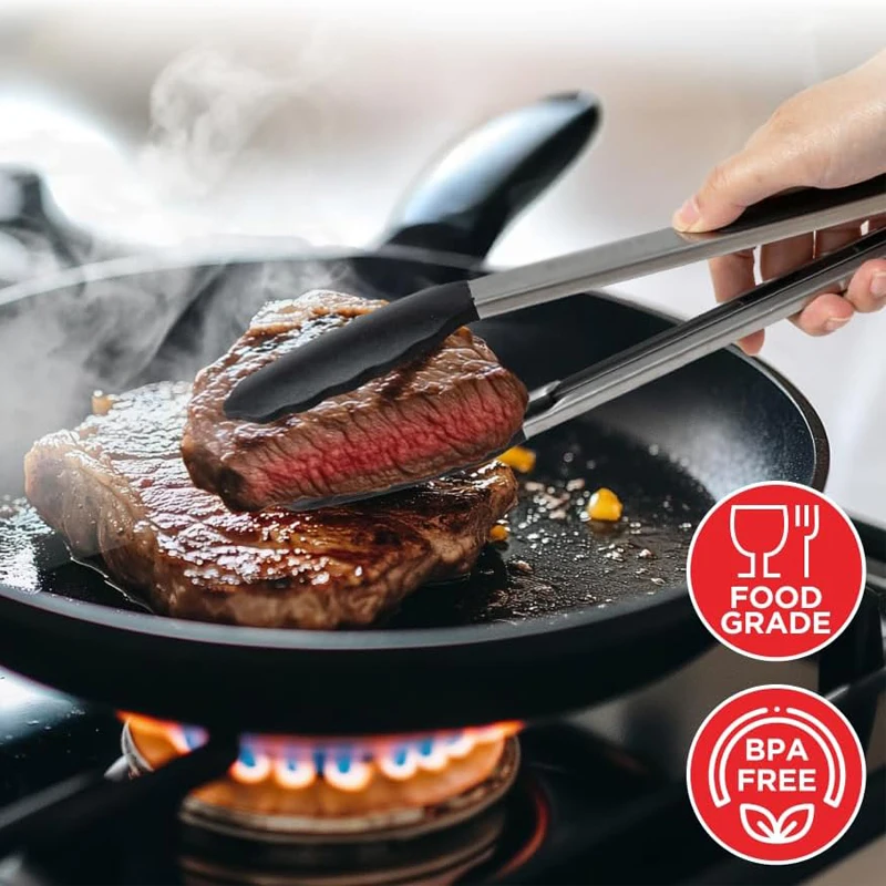 1. The kitchen cooking tongs are made of silicone and stainless steel, which are corrosion-resistant, not easy to rust, and durable.